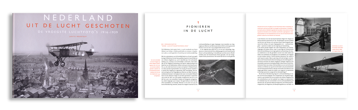 De historica heeft met hulp van fotohistorisch specialisten, kartografisch experts en geschiedeniskenners van de luchtmacht een dik boek samengesteld met luchtfoto’s van Nederland. De prenten zijn allemaal gemaakt tussen 1916 en 1939 vanuit vliegtuigen van de Luchtvaartafdeeling, de voorloper van de Koninklijke Luchtmacht. De fotografen gebruikten enorme camera’s, zeker voor hedendaagse begrippen. De ruim 3.000 glasnegatieven van het NIMH mogen dan inmiddels tussen de 81 en 107 jaar oud zijn, de scherpte van de afdrukken is dankzij de grote afmetingen verbazingwekkend. Gebouwen en zelfs personen op de grond zijn goed zichtbaar, zoals de slagersknecht die naast zijn fiets staat met voorop een grote mand met bestellingen, of de wandelaars op het strand van Hoek van Holland.