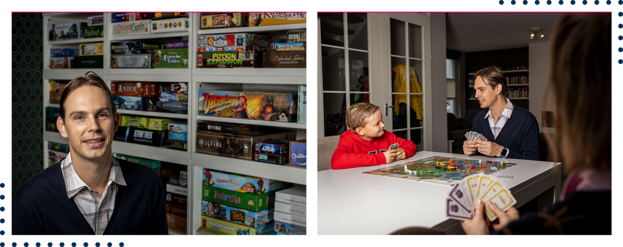 “Mijn zolder staat vol spelletjes, vooral bordspellen speel ik graag. Van mijn vrouw mag ik geen nieuwe meer kopen, zonder eerst een oude weg te doen, hahaha. Ik speel veel met mijn gezin, maar ook met vrienden. Maar dat laatste gaat nu even lastig vanwege corona.