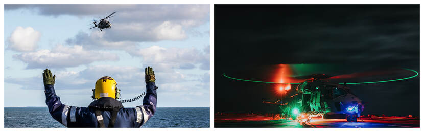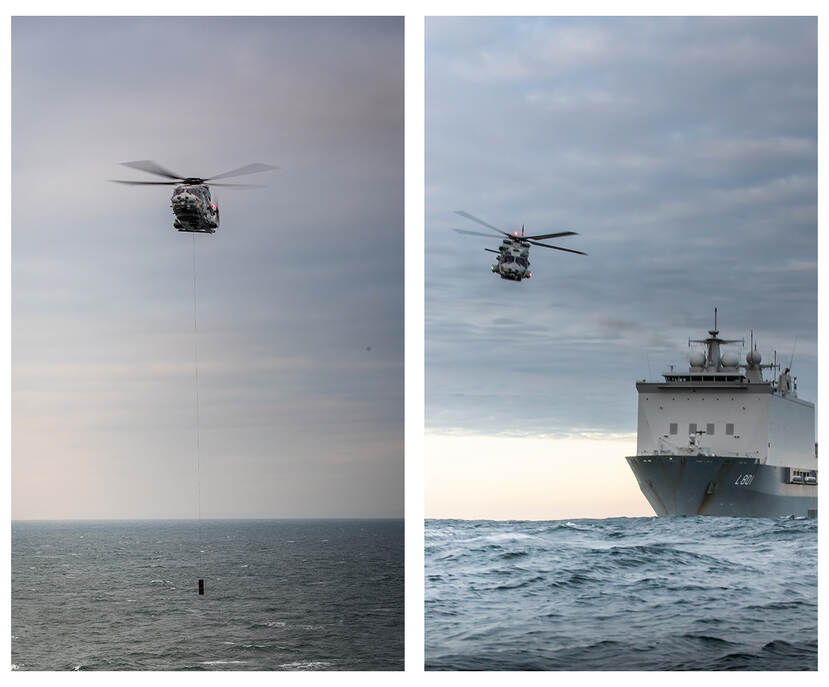 De NH90’s die jagen op de Nederlandse onderzeeboot Zr.Ms. Zeeleeuw doen dat samen met Zr.Ms. Johan de Witt en een Deens fregat. “In deze oefening werken we elk jaar samen met andere NAVO-landen. Een echte inzet moeten we immers met elke partner kunnen doen. Hoewel we allebei tot de NAVO en EU behoren, zijn procedures soms verschillend. Deze oefening verbetert onze samenwerking.”