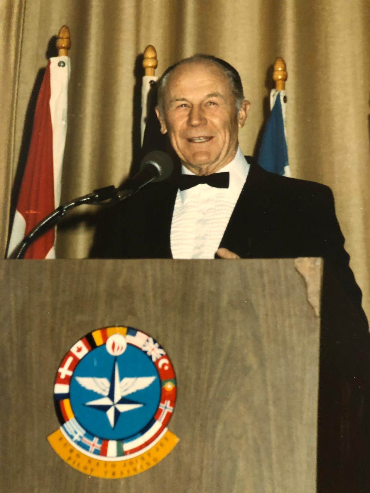 Yeager als gastspreker tijdens de wing-uitreiking van Dennis Luyt in de VS.