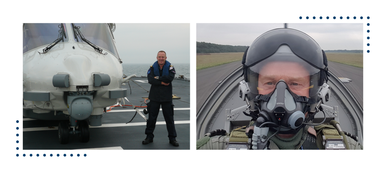 Als marine-officier vaart Jan samen met de NH90 mee op zee. Inmiddels hoort hij bij het 131 Squadron en om nog meer feeling met het lesvliegtuig te krijgen vloog hij al eens mee. Foto’s: privé-archief