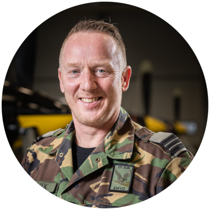 “Op mijn 18e begon ik als matroos bij de Marineluchtvaartdienst (MLD, red.). Daar heb ik 25 jaar een mooie tijd gehad als monteur. Ik vloog in de P-3C Orion mee als ‘in-flight technician’ tijdens oorlogsmissies zoals boven Kosovo, maar ook met tal van oefeningen. Ook woonde en werkte ik 3 jaar op Curaçao en voer ik kort mee toen de NH90 nog de projectstatus had. Door bezuinigingen binnen de marine bleef er van de MLD uiteindelijk weinig over. Het werd bovendien ondergebracht bij de luchtmacht, dus er was weinig marine meer aan. Daarom maakte ik 9 jaar geleden de overstap naar de KLu. Daar zou ik meer carrièrekansen hebben. Ik wilde doorgroeien, maar ook bezig blijven met vliegtuigtechniek. Bij de marine waren er minder mogelijkheden.”