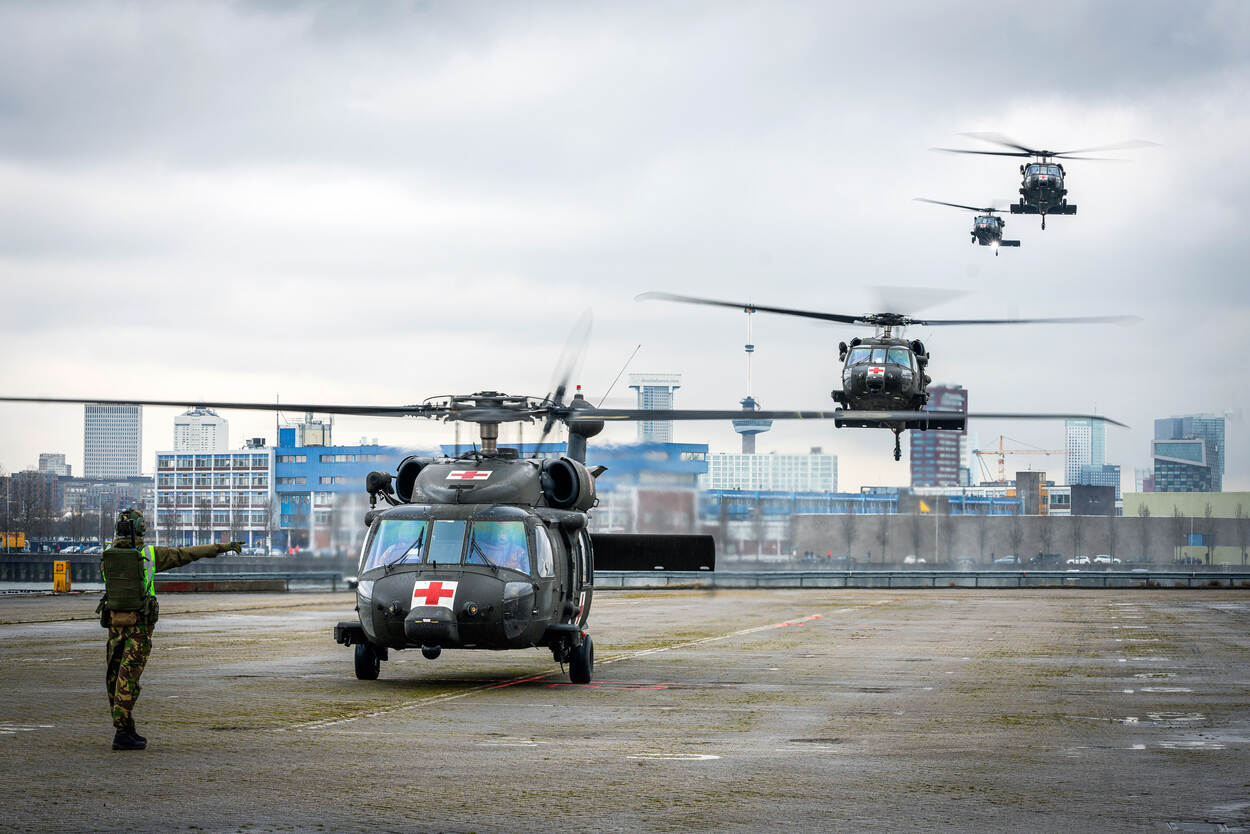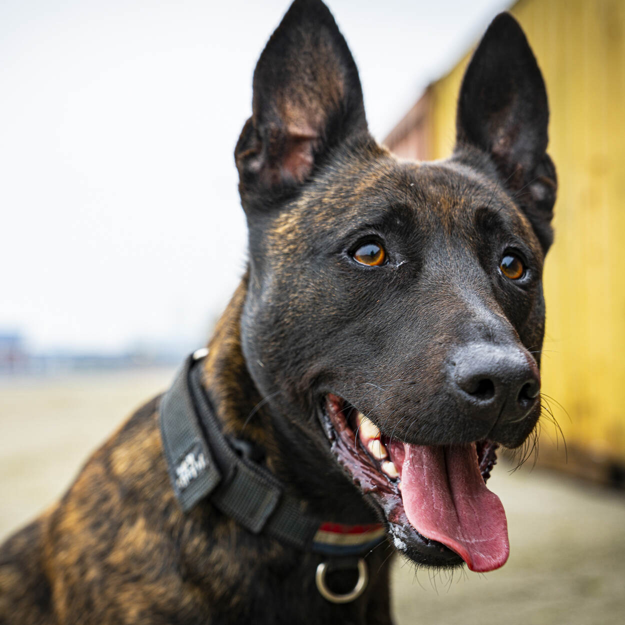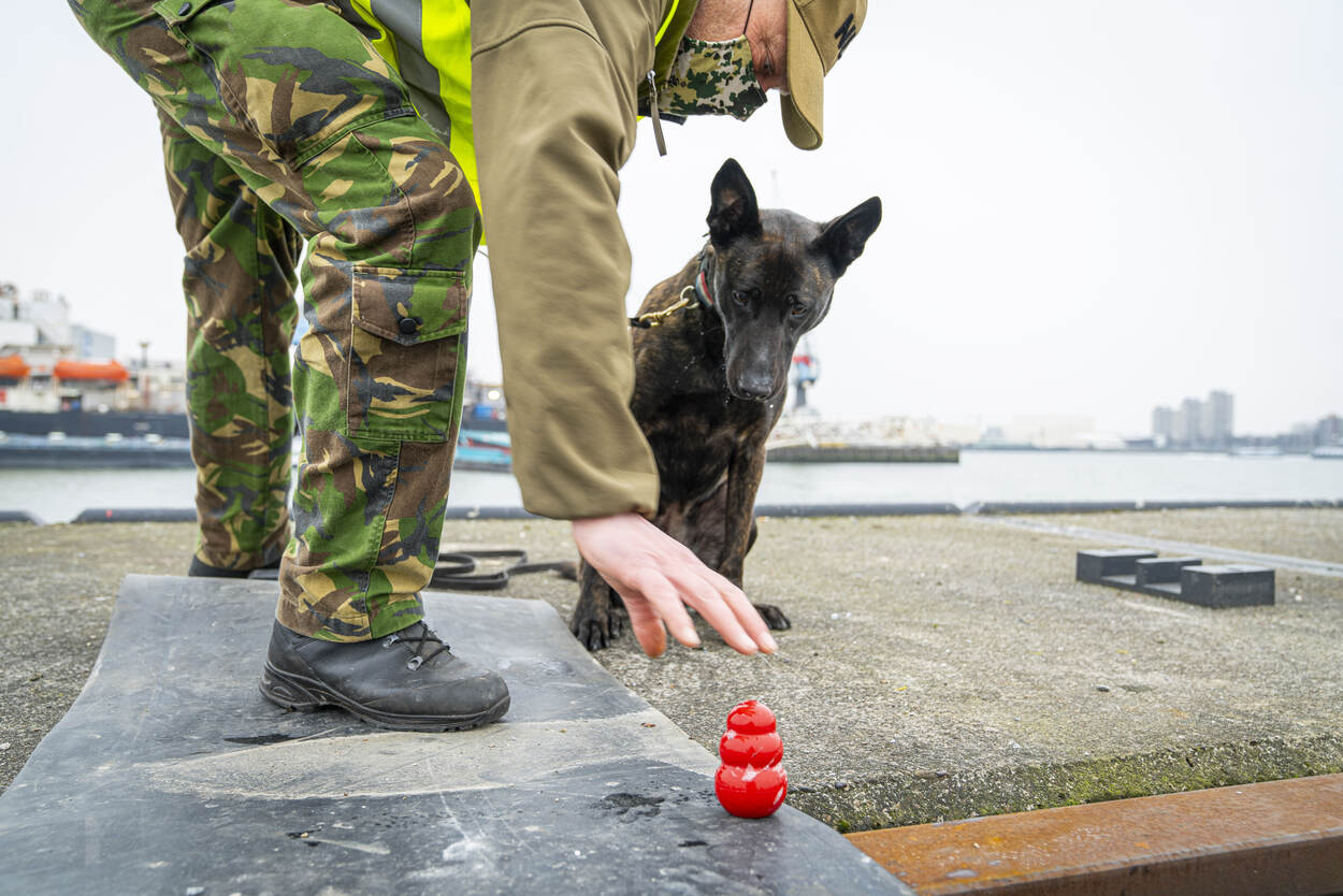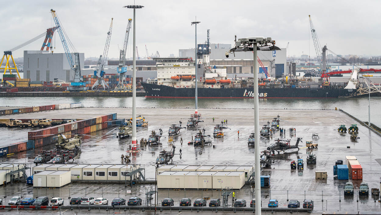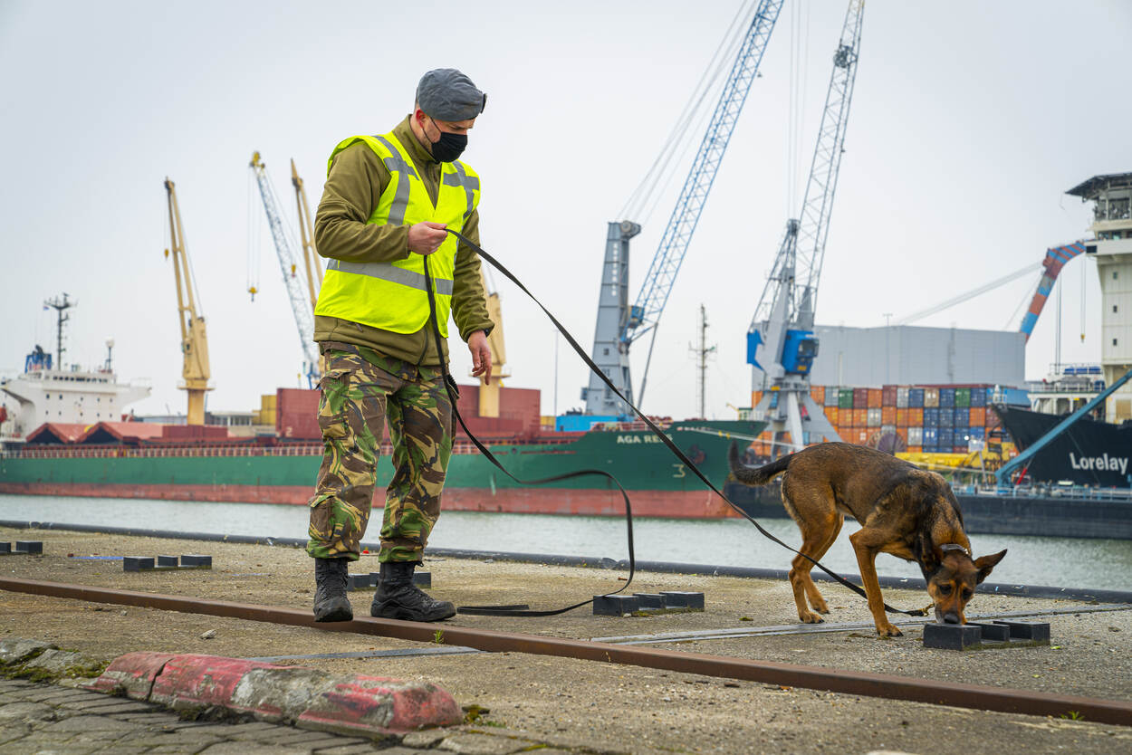 De helikopters van de US Army Combat Air Brigade staan inmiddels veilig aan de grond op een haventerrein midden in Rotterdam, klaar voor transport naar Amerika. Maar voordat ze in de Maasstad konden landen, nam Defensie diverse maatregelen om dat veilig te kunnen doen. Zo speurde een duo luchtmachtspeurhonden met hun geleiders het tijdelijk militair object (TMO) af op zoek naar mogelijke explosieven. Een dagje snuffelen in de haven.