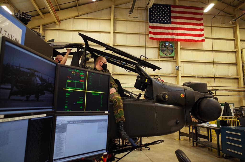 Defensie schaft voor eigen gebruik zelf ook enkele US Army-trainingsmiddelen aan zoals de Virtual Interactive Environment (VIE, zie foto) Apache waardoor de Apache maintainer-trainingen in Nederland voorbereid kunnen worden en zelfs deels kunnen worden gegeven. Foto: US Army