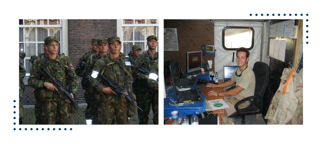 “Toen ik in 2002 afstudeerde van de computer science opleiding, hadden heel veel bedrijven een personeelsstop. In de regio Venlo, tussen Eindhoven en Maastricht, waren geen banen te vinden die mij aantrokken. Ik zag commercials van de luchtmacht voorbij komen waarin ze CIS’ers zochten. De heli’s en vliegtuigen trokken me ook wel, dus ik besloot een rondleiding te doen op de KMA. Het klonk heel avontuurlijk: een technisch uitdagende functie in combinatie met leidinggeven. Ik ging de kortmodel opleiding in van – toen nog – een jaar en startte op De Peel als CIS-officier. Daarna heb ik verschillende functies binnen het CIS-domein gehad en ging als plaatsvervangend hoofd CIS op uitzending naar Kandahar. Enorm leuk en leerzaam!”