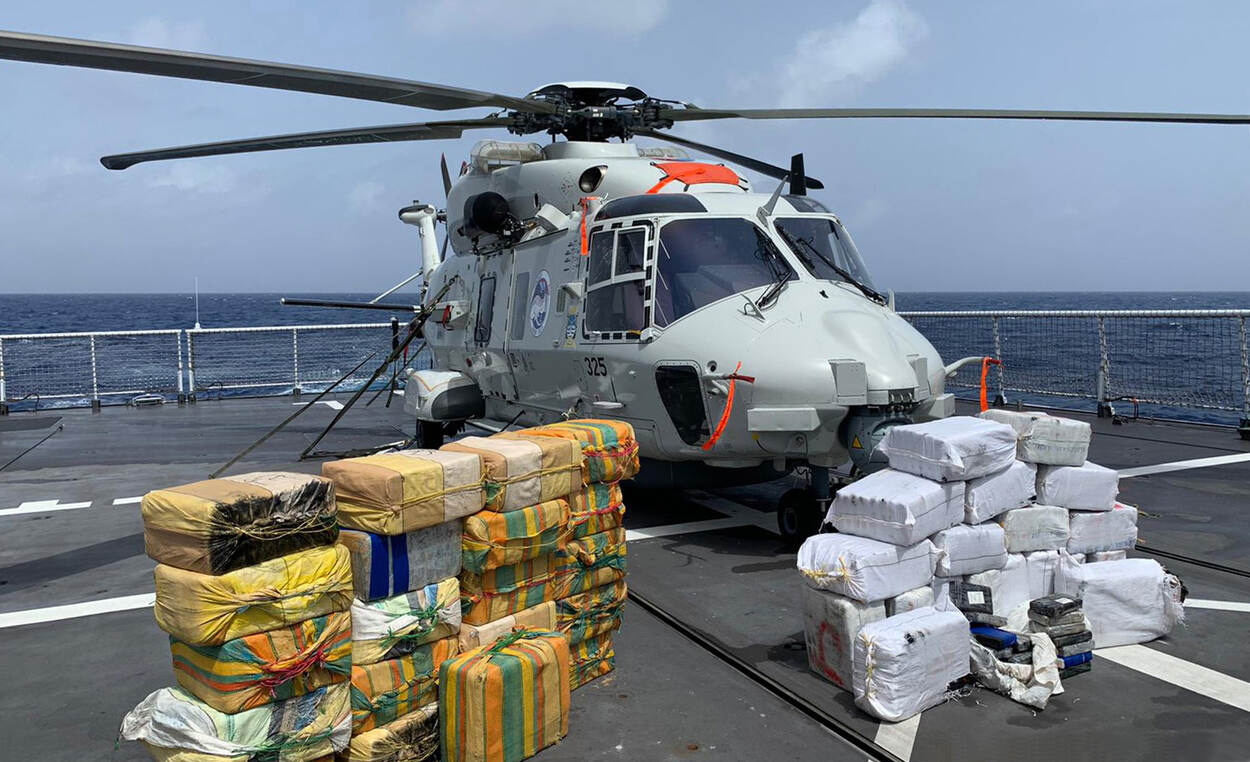 De NH90 maritieme gevechtshelikopter van patrouilleschip Zr.Ms. Holland hielp op 11 juni in één nacht bij het onderscheppen van twee grote drugstransporten in de Caribische Zee.