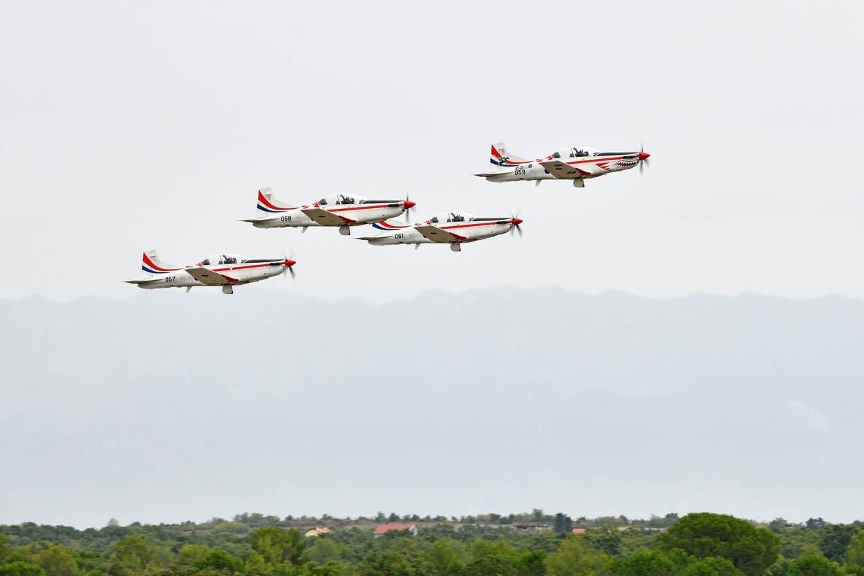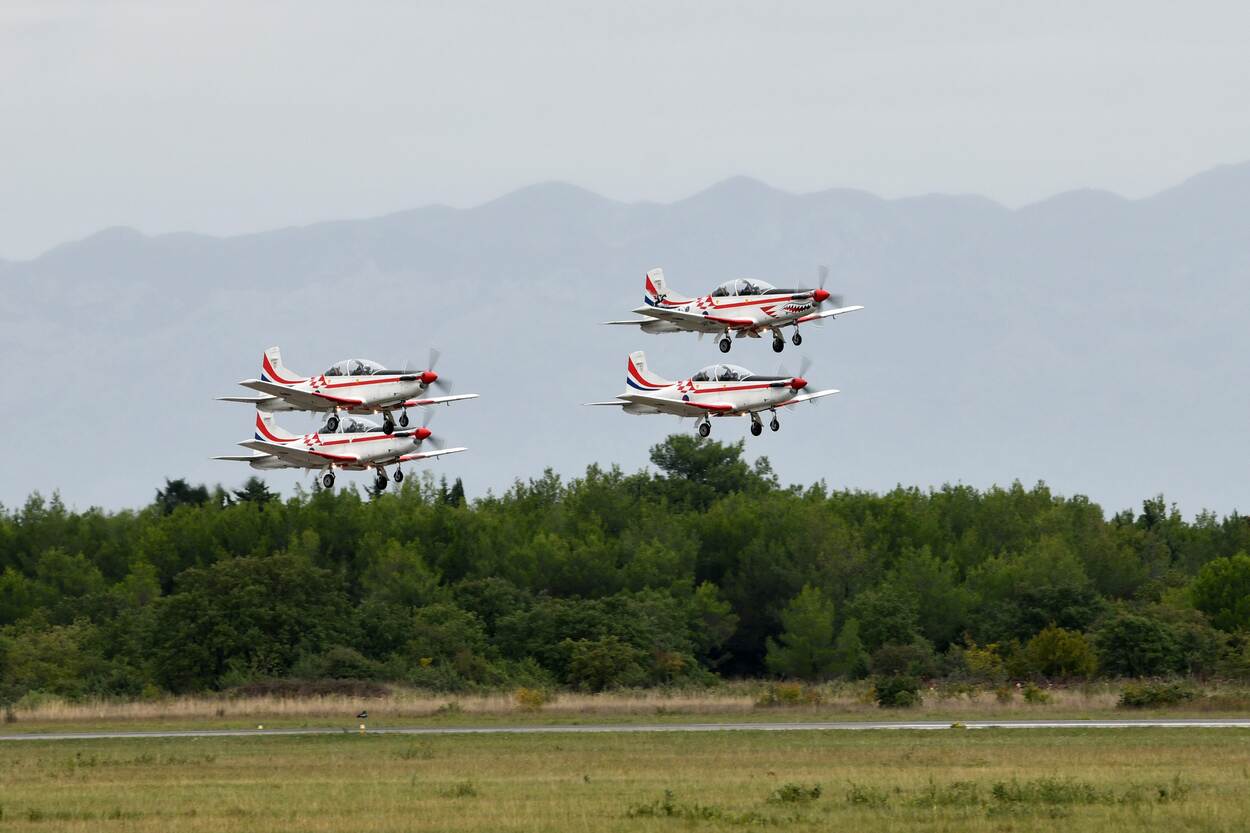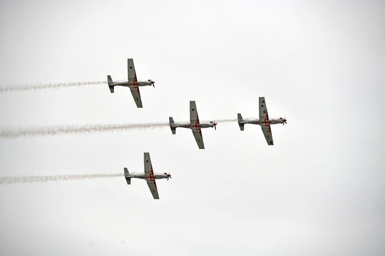 “Na de loop gaat Wings of Storm over in een Lazy Eight”, klinkt de stem van eerste luitenant Daniejel Rigo door de Kroatische lucht. Vier PC-9 turboprops van het inmiddels vermaarde Kroatische demonstratieteam voeren onder de tonen van de Amerikaanse band The Gossip hun programma op, boven het militaire vliegveld van Zadar. Het woord ‘trots’ valt vele malen, want sinds de oprichting in 2005 heeft de wisselende ploeg vele prijzen gewonnen.