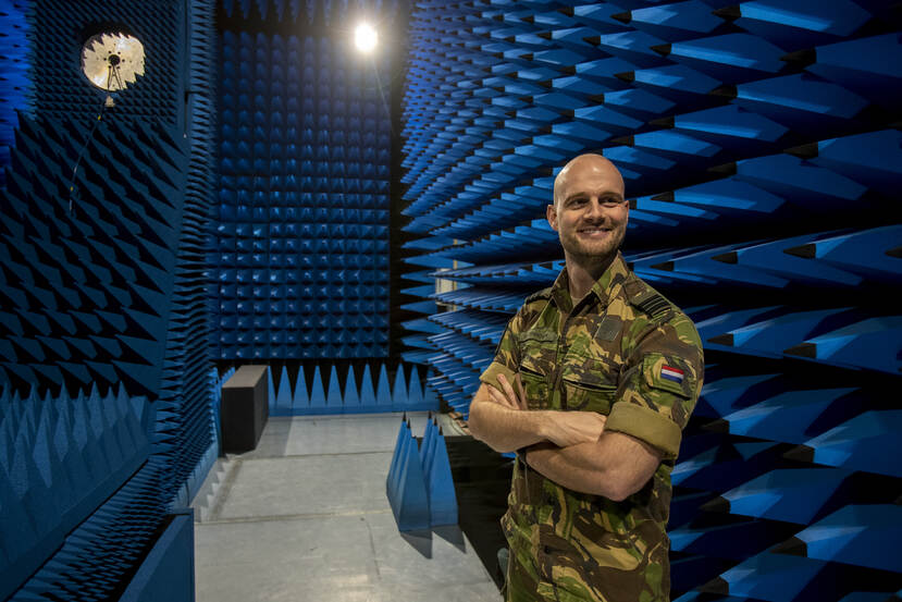 En laat het daar nu ook precies voor zijn bedoeld, zegt majoor Van Odenhoven. “Er kwamen hier klanten binnen met net zulke vraagtekens in de ogen als jij. Voor gespecialiseerde technici als Max is het gesneden koek, maar juist de gebruiker moet kunnen zien wat het effect is als een antenne een kras oploopt of in een andere hoek wordt geplaatst.”