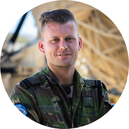 “Ik wilde altijd al graag bij Defensie, maar wist niet waar. Na de havo deed ik hbo-watermanagement. Ik liep een half jaar stage op Aruba bij de dienst openbare werken. Later studeerde ik af bij de Veiligheidsregio Zuid-Holland Zuid. Daar werd mijn interesse voor Defensie aangewakkerd. Ik ontmoette er de officier veiligheidsregio, waarmee ik veel sprak. Toen wist ik zeker: ik wil bij Defensie.