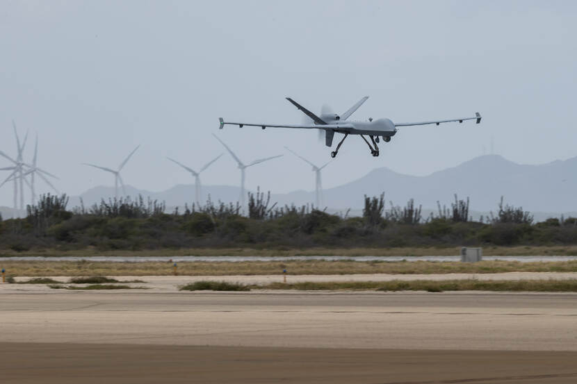“Ik werd er wel een beetje emotioneel van.” Overste Boudewijn Roddenhof zag zojuist ‘zijn’ eerste MQ-9 Reaper take off gaan. Ook zijn personeel staat te glunderen. Het nieuwste wapensysteem maakte woensdag 20 april op Curaçao officieel zijn entree binnen de luchtmacht. De operationele testperiode kan beginnen.