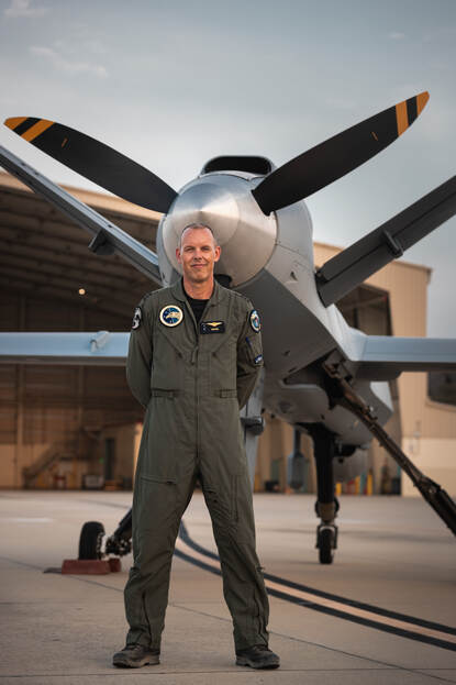 “Ik was in 2016 de vijfde persoon bij het MQ-9-projectteam, toen was er nog geen squadron. Ik heb de eenheid mee opgebouwd vanaf de eerste tafels en computers op Leeuwarden. Nu is eindelijk ook het vliegtuig binnen. Hiervoor werkte ik als surveillance operator op de AWACS. Ik denk dat onbemande vliegtuigen de toekomst zijn. Mede daarom wilde ik heel graag als een van de eerste sensoroperators hierbij betrokken zijn.