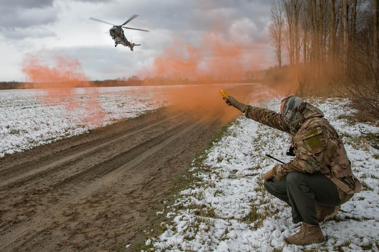 “Dat klopt. Voor het eerst deden er F-35’s mee, maar ook een Cougar en drie Apaches. Samen voerden ze een combatsearch and rescue-missie uit. In het scenario kregen ze te maken met een neergestorte straaljager en een gewonde vlieger. Die persoon moest in veiligheid worden gebracht. Jachtvliegtuigen maakten daarvoor het luchtruim vrij, zodat de Cougar een medische evacuatie kon uitvoeren onder bescherming van twee Apaches. Ook hebben we met Apaches close air support getraind met grondtroepen. Dat trainen we normaal alleen met jachtvliegtuigen. Het voordeel van samen met Apaches opereren is dat zij goed de doelen op de grond kunnen aangeven. Ze kunnen namelijk laagvliegen en goed zien wat er op de grond gebeurt. Ook leggen ze direct contact met de grondtroepen.