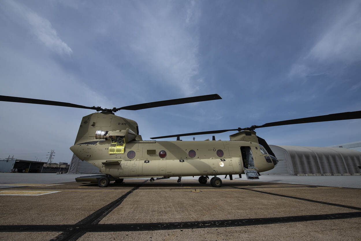 Tien ‘nieuwe’ Chinooks zijn inmiddels in Nederland. De komende maanden komen er nog vijf naar ons land. Vijf blijven op Fort Hood in Amerika staan. Foto: Koninklijke Luchtmacht
