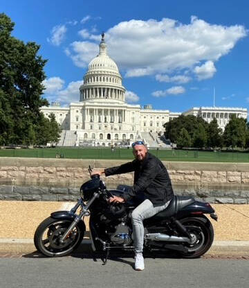Peter met zijn Harley-Davidson V-Rod poserend voor het Capitool, de regeringszetel in Washington D.C. Foto: uit privécollectie