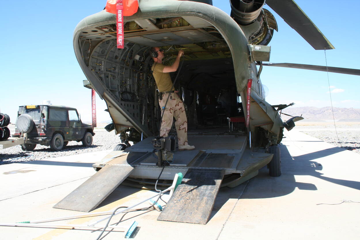 Tijdens de uitzending gaat een Chinook verloren door het omrollen in een nachtelijke brown out, gelukkig zonder slachtoffers. “Het zand lijkt daar op bakmeel. Zo’n stofwolk bouwt veel sneller op dan zand. Na de crash vlogen we niet meer ‘s nachts, maar in de schemering. Het was gaaf om samen met het KCT geheime missies te plannen, dat gaf echt een extra dimensie.” In april 2006 is de missie over.