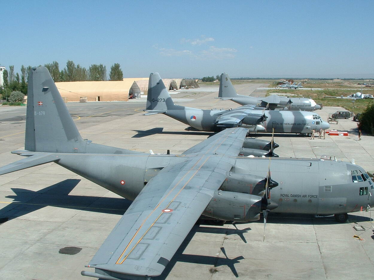 “Meervoud, want we opereerden vanaf Manas namelijk samen met een Noors en Deens C-130-det. Onze kist kwam op 12 april aan. Ieder land had zijn eigen vliegoperaties, maar logistiek deden we bijvoorbeeld samen. Verder bouwden de Noren de ops area, de Denen het mobiele netwerk en Nederland onder andere de welfare.