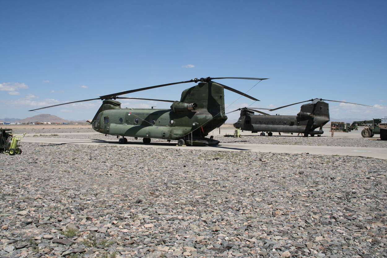 Een bijzondere missie start eind april 2005, als vier Chinooks van 298 Squadron neerstrijken op Kandahar Airfield (KAF). “Wij vielen onder OEF, niet onder ISAF”, vertelt Miggels. “Het was een uitzending van een compagnie van het Korps Commandotroepen (KCT, red). Ons operatiegebied was de Red Desert, ten zuiden van Kandahar. Missies waren geheim. Kandahar was Amerikaans, maar er zaten ook andere nationaliteiten. Wij aten bij Amerikanen en hadden tenten van hen overgenomen. Daarin stond zo’n ‘brul-unit’ als airco. Met houten schotten maakten we een soort slaapkamers.”