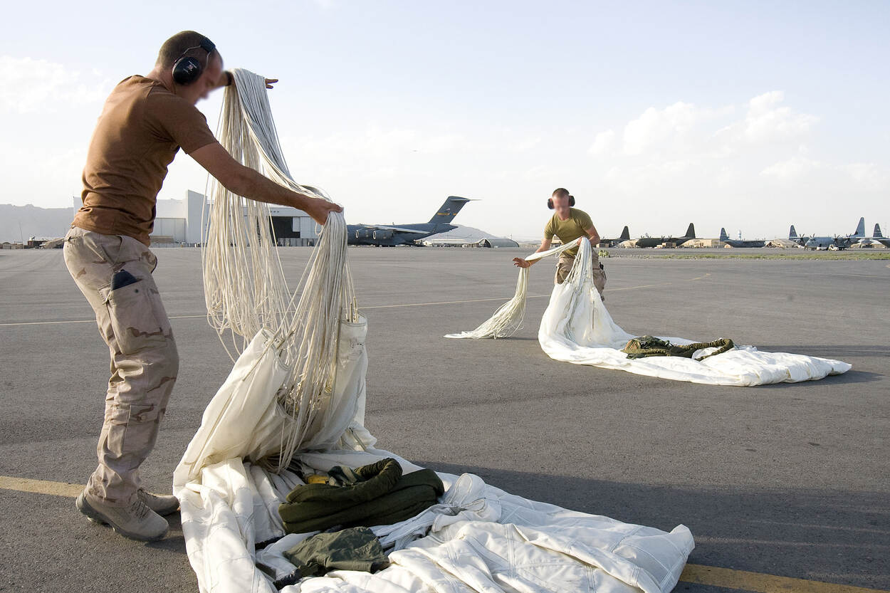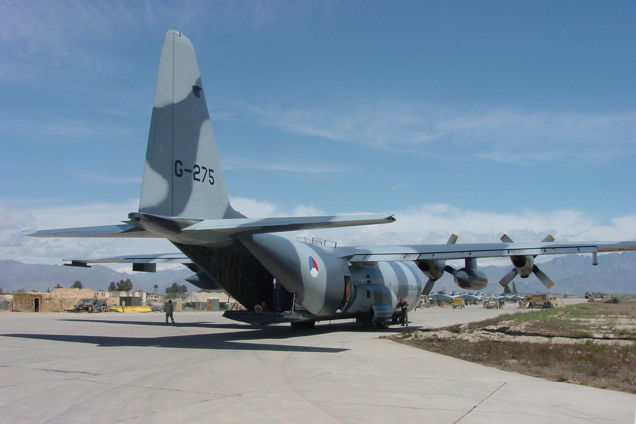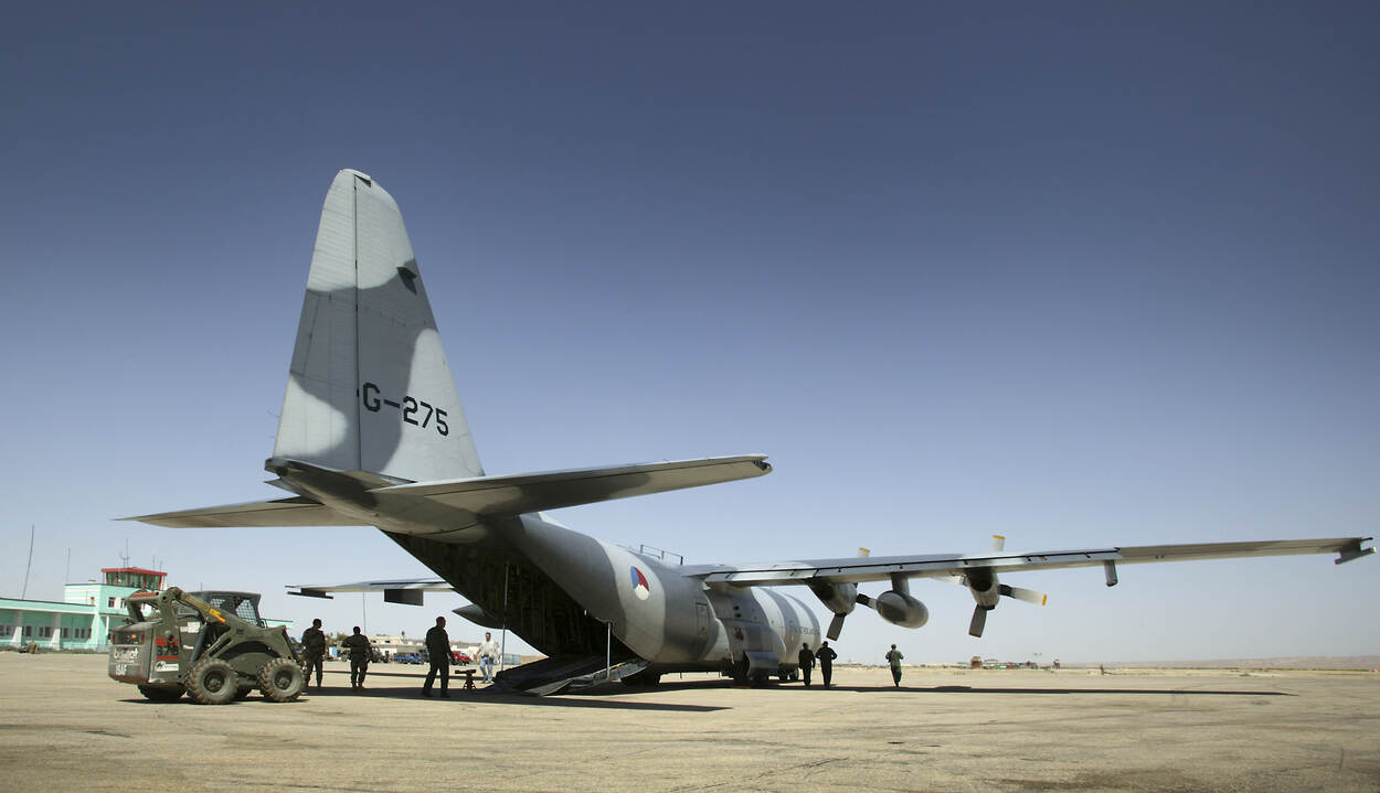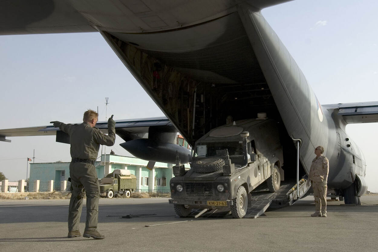 “De C-130 kwam ook op velden waar je het geweervuur nog hoorde in omliggende bergen. Daarom vloog er geregeld een zwaar bewapend Amerikaans of Frans veiligheidsteam mee dat na landing een cordon om het vliegtuig legde.”