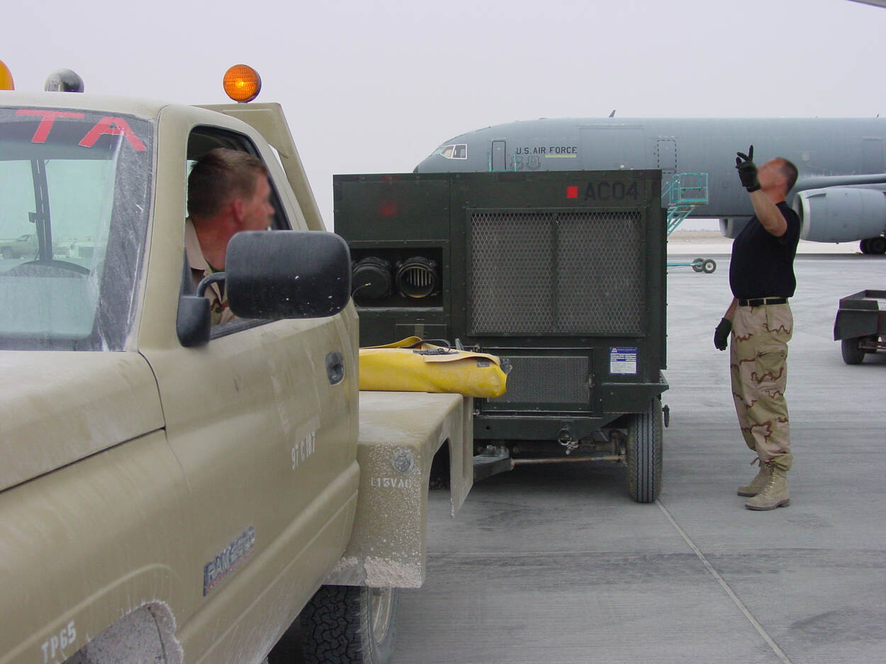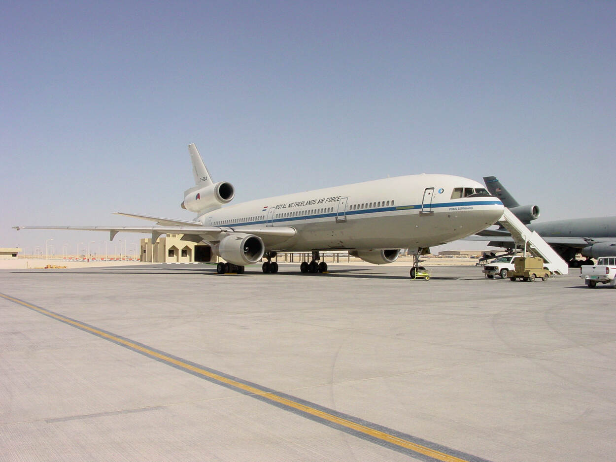 Ruim een maand na de aanslagen van 11 september 2001 begint op 7 oktober Operation Enduring Freedom (OEF). Daarbij bestrijden Amerikaanse en andere (lucht-)eenheden de Taliban in Afghanistan. Op 6 april 2002 start de Nederlandse luchtmachtbijdrage daaraan. Ter ondersteuning van gevechtsvliegtuigen, staat de 379th Air Expeditionary Wing met tien KC-10’en op de luchthaven Abū Naklah in Qatar. “Daarvan hebben wij een plek overgenomen”, vertelt Kloosterman. “Dat paste goed in elkaar. We waren met onze KDC-10 op Amerikaanse leest geschoeid. Hun manier van opereren was voor ons niets nieuws.”