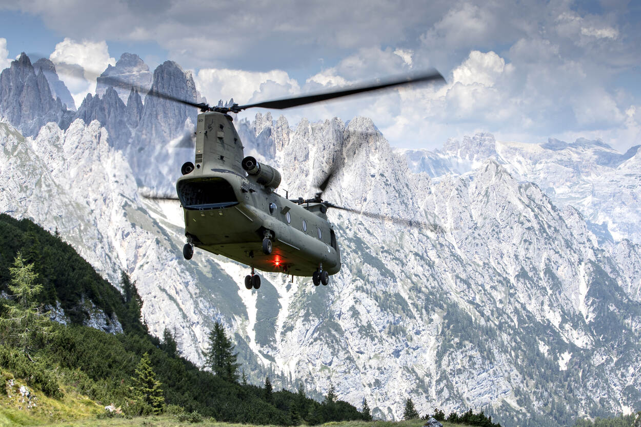 Het DHC zet zwaar in op High Blaze. Maar liefst vier Cougars, vijf Apaches en eenzelfde aantal nieuwe Chinook ‘CAAS’-transportheli’s vonden een plekje op de Amerikaanse Aviano Air Base, gelegen aan de zuidelijke rand van de Dolomieten. Hiervandaan is het slechts enkele minuten vliegen naar het oefengebied, dat dwars door de bergketen loopt. Hoe minder tijd er verloren gaat aan ferry’en, hoe langer er geoefend kan worden en dat is fijn. Het gebied waarin de toestellen actief zijn, biedt voldoende mogelijkheden alle technieken van het bergvliegen te beoefenen.