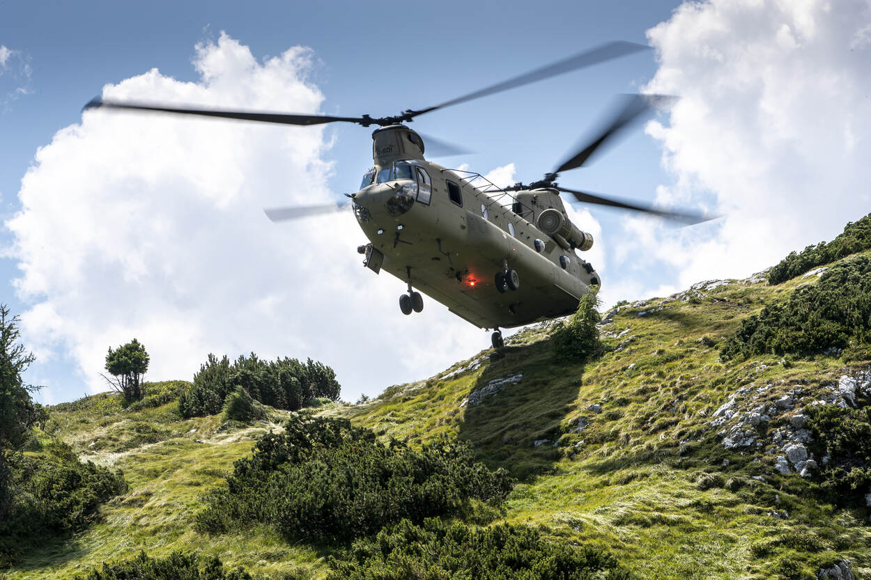 Voor de Chinook is de zogenoemde ridgeline een van de belangrijkste technieken om te oefenen. Met alleen de achterwielen en laadklep rustend op de rotsen zet je al hoverend troepen en materieel op moeilijk toegankelijke plekken af. Doordat je in de cockpit niet precies ziet waar je landt, is bij deze methode de hulp van de loadmaster onontbeerlijk. Hangend uit de zijdeur geeft hij of zij aanwijzingen waar precies de wielen terecht moeten komen. Jeroen vertelt dat het belangrijk is dat je bij het uitvoeren van een ridgeline rondom veel vrije ruimte hebt. En dat je het toestel zo stil mogelijk houdt. “Dat gebeurt volledig met de hand. Zodra de wielen aan de grond staan, schakelt de automatische piloot zichzelf uit.”