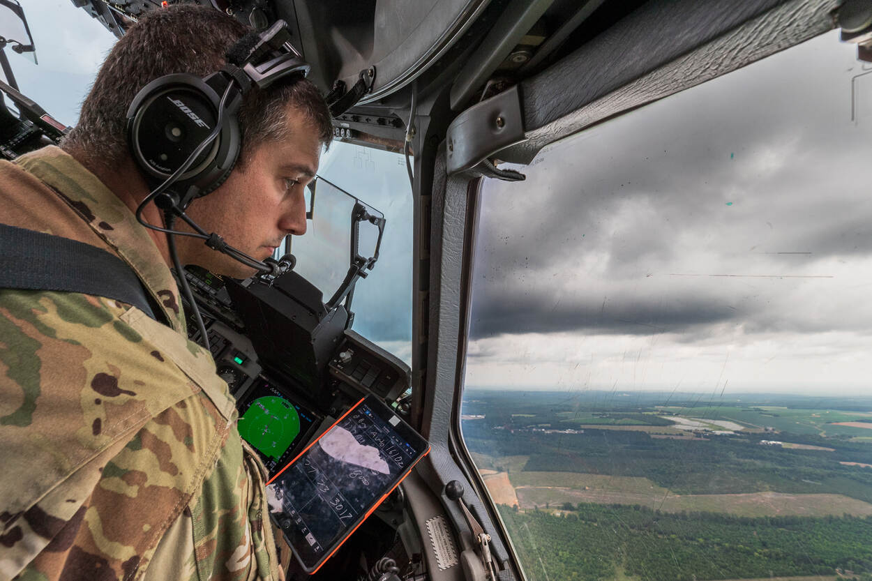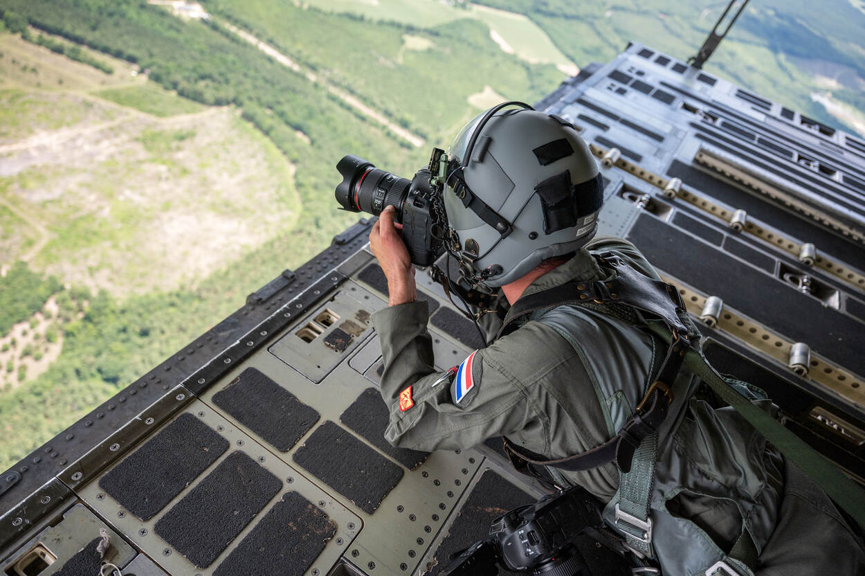 Schrik is fotograaf bij het Mediacentrum Defensie en volgt in Nederland de opleiding tot aerial photographer. Als verdiepingsslag besloot hij de Amerikaanse opleiding erbij te doen. “Het grote verschil is dat de Amerikanen hun fotografen opleiden tot crewmember”, vertelt Schrik. “Dat betekent dat je met van alles helpt en verantwoordelijkheden aan boord hebt. Zo kijkt de fotograaf mee naar buiten of er onveilige situaties zijn. Ook worden alle noodprocedures in verschillende kisten behandeld, want in het geval van een calamiteit is ook de fotograaf ervan. Bij de briefing vooraf wordt bepaald wat jouw rol is tijdens een noodsituatie. Zo was ik in de C-17 bijvoorbeeld verantwoordelijk voor het luik dat open gemaakt moet worden bij een ditch te water.”