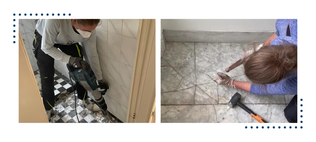 Naast haar fulltimebaan en de voorbereiding op het roei-avontuur heeft Dijkstra nog een klushuis. Begin november kreeg ze de sleutel. “Slopen is ook een goede krachttraining.” Volgend jaar oktober hoopt ze te verhuizen. Foto: uit privécollectie