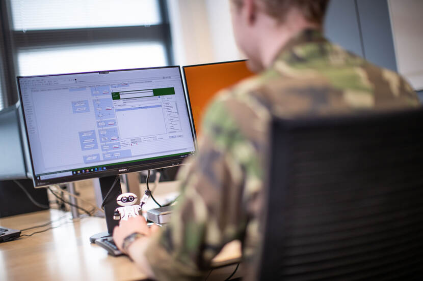 Sergeant 1 Florian van de POL op Leeuwarden kan nu vooral bezig zijn met het ‘echte werk’. Een robot neemt de administratie grotendeels uit handen.
