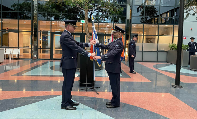 Luitenant-kolonel René Francken is sinds 9 februari commandant van het 711 Squadron. Hij nam de leiding over van ranggenoot Jeroen Rebergen. De ceremonie vond plaats bij Luchtverkeersleiding Nederland (LVNL) op Schiphol-Oost, waar sinds 2017 ook de militaire luchtverkeersleiding is gehuisvest. Foto: LVNL