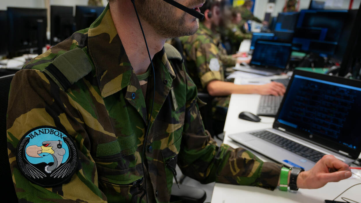Waar luchtverdedigers zich tijdens JPOW 2023 voorbereiden op het ‘eggie’, doen eerste luitenant Harry Polhout en Yoram Bijleveld dat ook. Werkzaam bij respectievelijk het Cyber Warfare Training Center en het Defensie Cyber Security Center sleutelden de ‘digitale inbrekers’ het cyberscenario voor JPOW in elkaar. Dat is serious business, want de luchtverdediging is vatbaar voor cyberaanvallen. “Ga je op uitzending, dan moet je er altijd rekening mee houden”, zegt Bijleveld. Doel van het tweetal tijdens JPOW is om in het computersysteem te komen en hier zo lang mogelijk onopgemerkt te blijven. “Op die manier steel je de meeste info of veroorzaak je veel schade”, aldus Bijleveld.