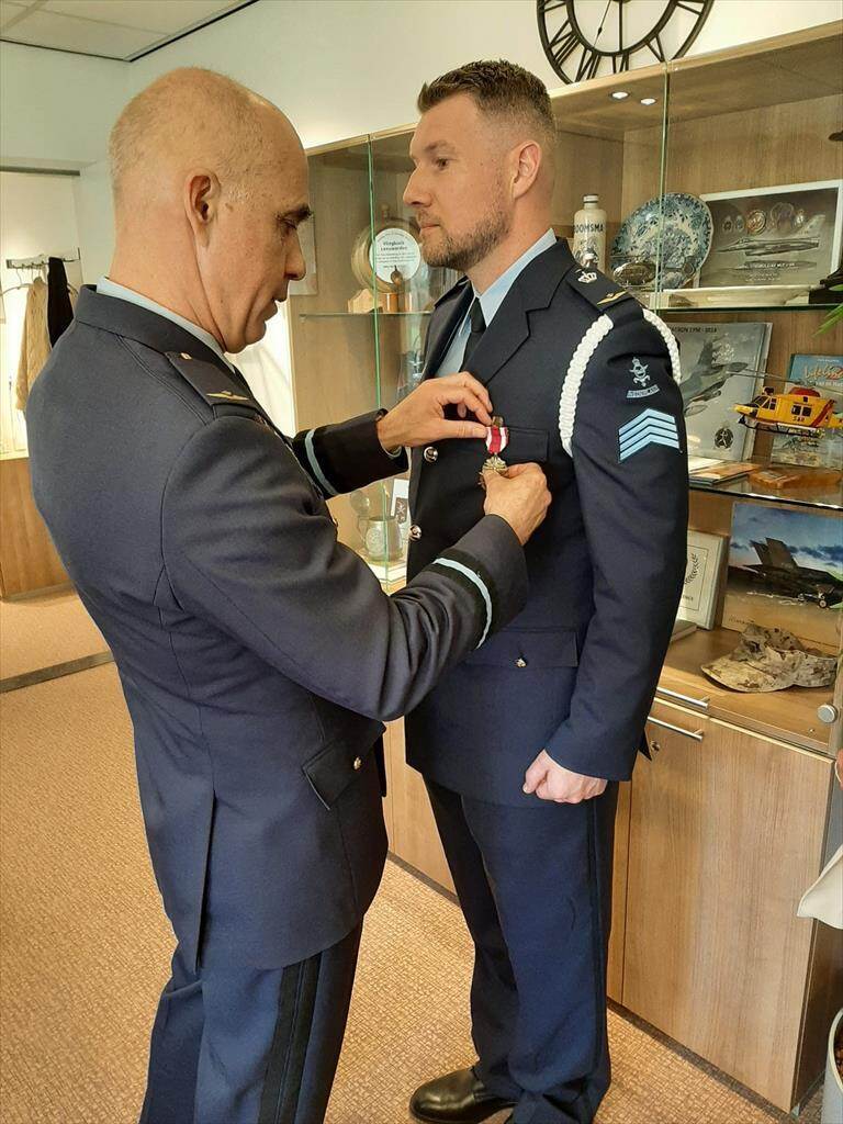 Sergeant-majoor Thijs Mulder ontving op 17 april de meritorious service medal (MSM) uit handen van de Commandant Air Combat Command, commodore Johan van Deventer.