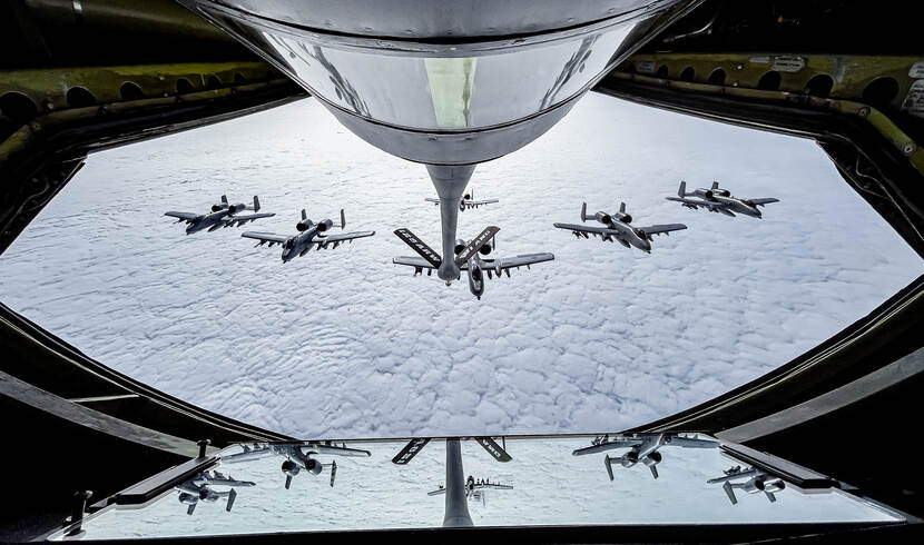 De Amerikaanse luchtmacht stelde voor de oefening zo’n honderd vliegtuigen beschikbaar. Een groot deel daarvan kwam vanuit liefst 35 staten uit de VS overgevlogen, zoals deze A-10’en die met een KC-135 de oceaan overvliegen. Foto: USAF, Lauren Kmiec