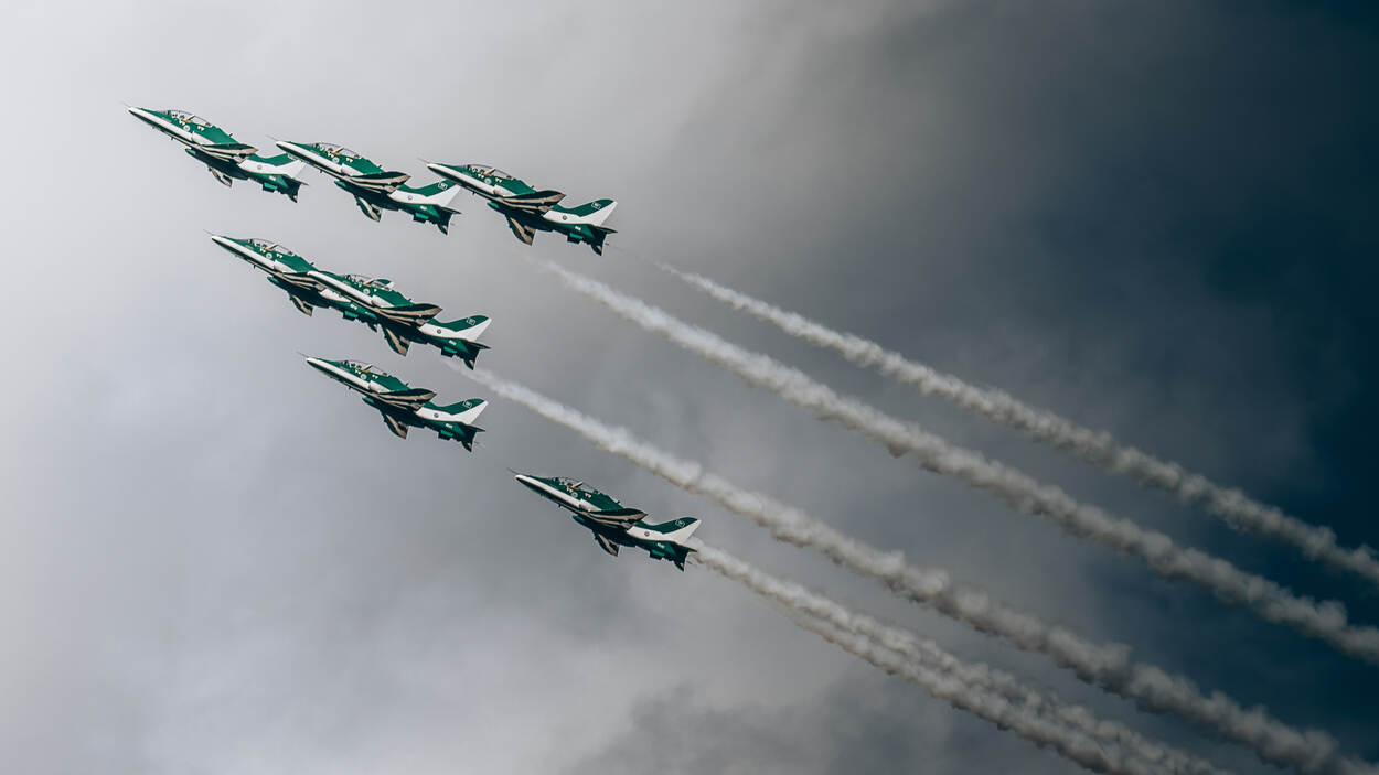 Op de RIAT zijn vliegtuigen te bewonderen die je weinig of nooit ziet, zoals deze Hawks van de Saudi Falcons, ook wel Saudi Hawks genoemd.