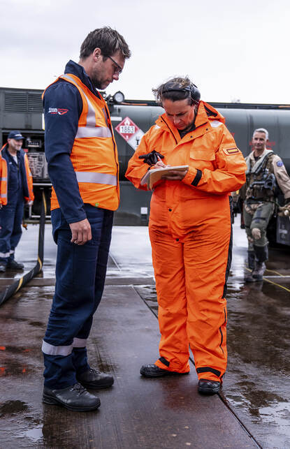 Ook de Nederlandse F-16’s en F-35’s werden door Jan en Martijn afgehandeld en getankt, uiteraard in samenwerking met het eigen personeel van deze toestellen.