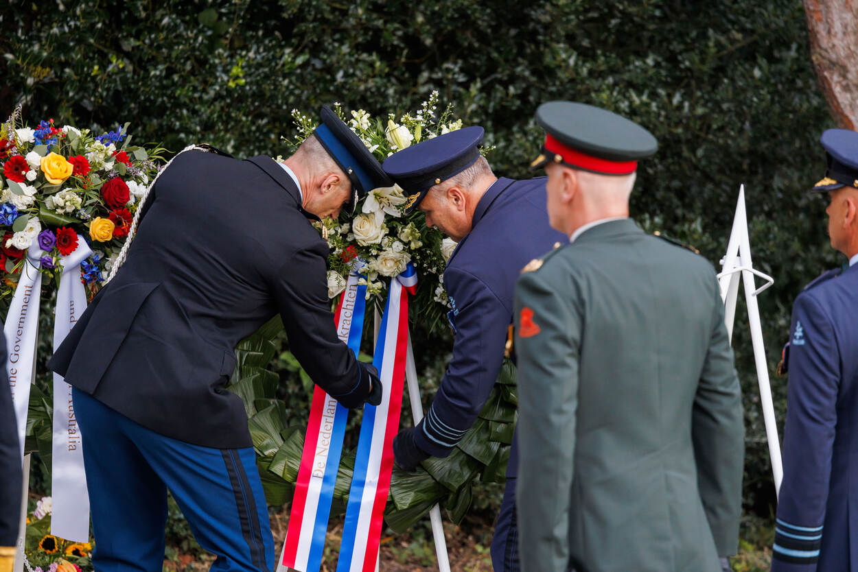 Commandant der Strijdkrachten generaal Onno Eichelsheim en waarnemend Commandant Koninklijke Marechaussee generaal-majoor Roger Costongs legden een krans uit naam van de krijgsmacht. Dat gebeurde in aanwezigheid van de operationele commandanten van marine, landmacht en luchtmacht of hun plaatsvervangers, en minister van Defensie Kajsa Ollongren.