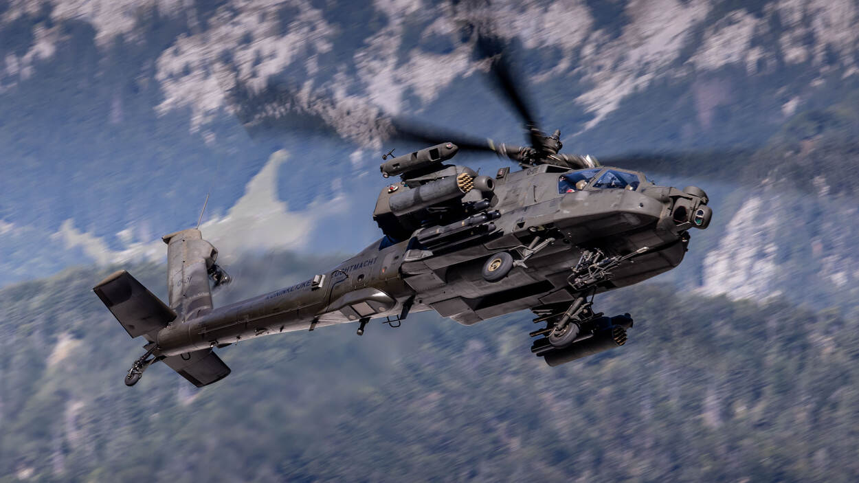 Het bergvliegen levert schitterende beelden op. Uiteraard zijn ook de Apaches van 301 Squadron van de partij tijdens High Blaze.