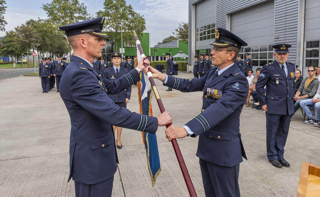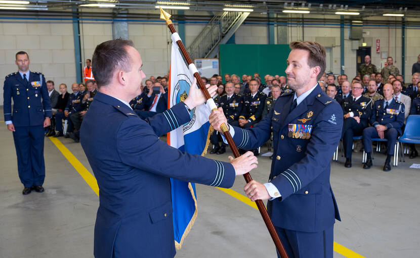 Luitenant-kolonel Pascal Smaal nam op 8 september het commando van 322 Squadron over van luitenant-kolonel Guido Schols. Foto: sergeant Jasper Verolme