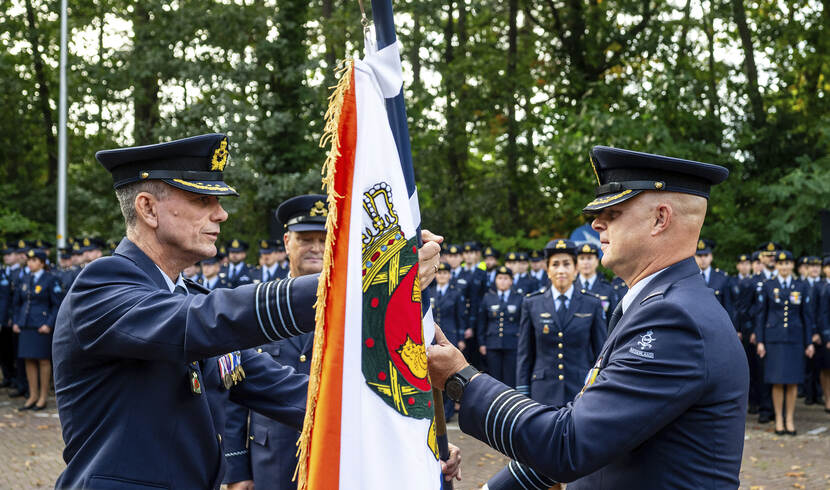 Vliegerfysioloog kolonel Ted Meeuwsen is sinds 6 oktober de nieuwe commandant van het Centrum voor Mens en Luchtvaart in Soesterberg. Hij nam het commando over van vliegerarts kolonel Eric Onnouw. Foto: Frank van Beek