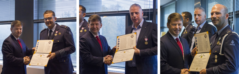 Zij ontvingen deze medailles als blijk van waardering voor de uitstekende samenwerking met diverse civiele en militaire belanghebbenden en partners, zowel in de Verenigde Staten als in Nederland. Alle drie vervulden vele jaren, in verschillende functies en rollen, een voortrekkersrol op het gebeid van voorbereiding op mogelijke nucleaire ongevallen en incidenten. Foto’s: Amy Pereira