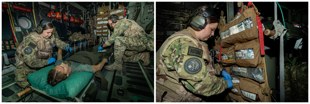 Kapitein vliegerarts Marvin krijgt tijdens de vluchten naar Cyprus met meerdere patiënten te maken. Onder andere met een evacuee met een ‘gebroken arm’ en een vrouw met een ‘steekwond’ in haar been. “Tijdens de oefenevacuatie hebben we vooral gefocust op de overdracht van de patiënten door de mariniers aan ons, daar hadden we afspraken over gemaakt. Wij zijn als medisch personeel speciaal geschoold voor optreden in de C-130, dus we oefenen dit vaker. Maar tijdens deze NEO-oefening heb je weer met andere variabelen te maken waarop we moeten inspelen. Zoals een vooraf onbekend aantal patiënten en minder handelingsruimte door de vele evacuees en/of mariniers.”