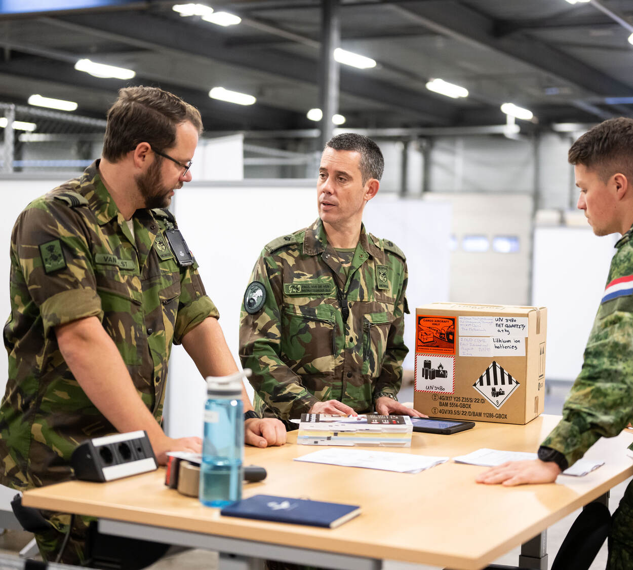 En daar moet de vierdaagse training in het gloednieuwe trainingscentrum verandering in brengen. In die periode leren cursisten niet alleen hoe het vuistdikke handboek van IATA (International Air Transport Association, red.) in elkaar steekt en waar ze wat kunnen vinden. “Hier bieden we hen ook praktijkervaring”, geeft adjudant Paul van de Ven aan. Als hoofd van DLE is hij eindverantwoordelijk voor het trainingscentrum. Hij wijst naar het verpakkingshandboek van IATA dat op tafel ligt, met een dikte van twee gestapelde telefoonboeken. “En allemaal flinterdunne viltpagina’s, dus het is ontzettend veel. Hier leer je niet alleen hoe je in dit handboek op de juiste manier moet zoeken, maar ook hoe je op de juiste manier moet verpakken, etiketteren en hoe je de juiste documenten dient op te maken.”