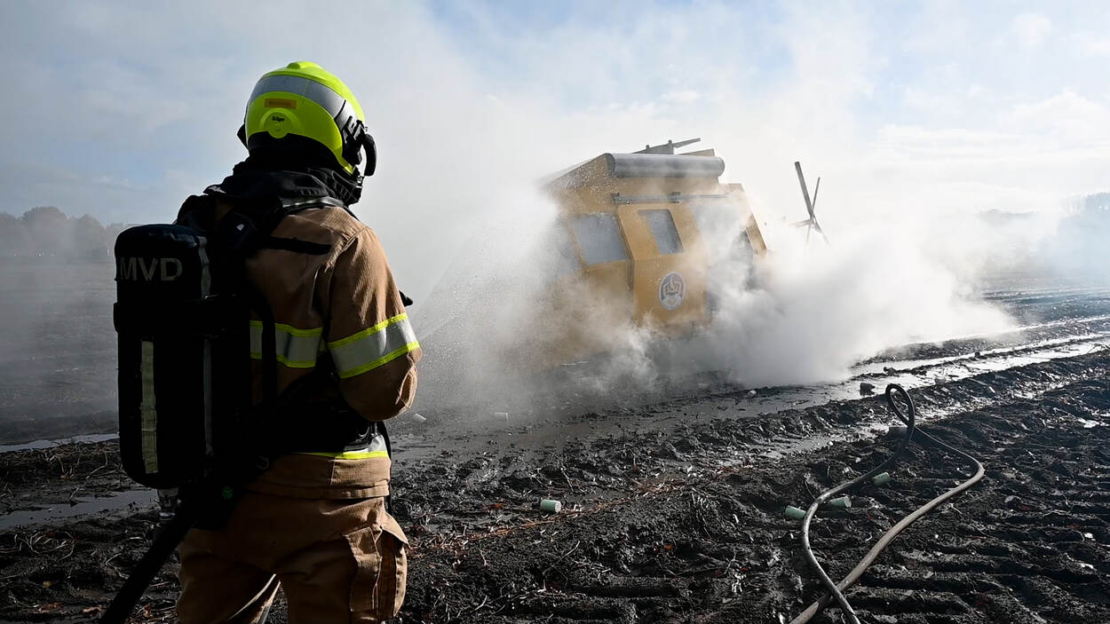 Die wordt gesimuleerd in een mock up van het Brandweer Opleidings- en Trainingscentrum op Vliegbasis Woensdrecht.