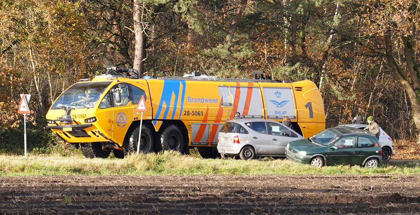 Bijstand komt ook van de brandweer van 941 Squadron van het Air Mobility Command op Vliegbasis Eindhoven. Zo staan er twee E-One Titan blusvoertuigen – de reservevoertuigen van Eindhoven en Vliegbasis Volkel – met elk drie man personeel paraat. Ook is er een voertuig met de zogeheten on scene commander. “Een heel nuttige oefening voor ons”, meldt de Eindhovense brandweerman sergeant-majoor Hans Spruijt die betrokken is bij de oefenleiding. “We oefenen vaker met fixed wing dan met helikopters, maar het is zeker geen onbekend terrein voor ons. Al werkten we nu wel samen met een ander brandweerkorps. Normaal hebben we elke twee maanden een oefening met de brandweer Eindhoven post Woensel. Alles is trouwens prima verlopen: onze mensen vonden het een topoefening.”