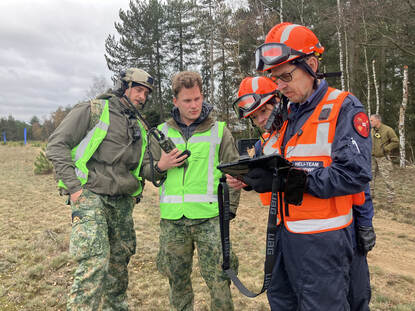 Hilgeholt, oud-topsporter die in 2014 wereldkampioen moderne vijfkamp wordt, houdt zich binnen de Veiligheidsregio Limburg Noord (VRLN) bezig met het voorbereiden en coördineren van militaire bijstand tijdens crisisbeheersing en rampenbestrijding. En hij kan daadwerkelijk aan de bak als de verbinding met de centrale meldkamer uitvalt. “Een aantal medewerkers is dus uit de oefening getrokken, maar dat maakt het juist mooi. We hebben even de koppen bij elkaar gestoken en hier een provisorische meldkamer ingericht.”