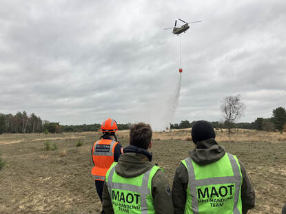 Op aanwijzingen van het heli-team van de brandweer en het Mobile Air Operations Team van de luchtmacht...