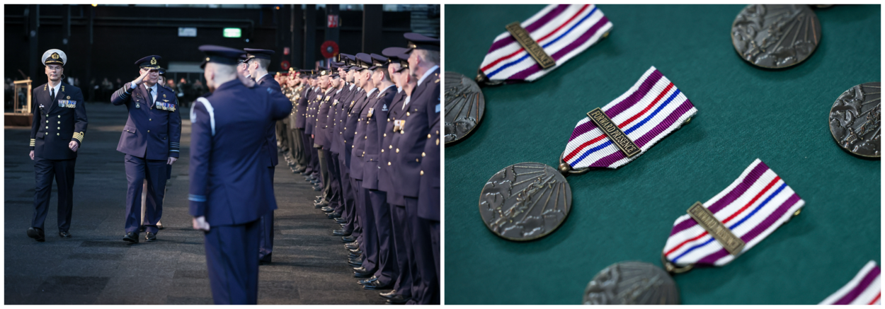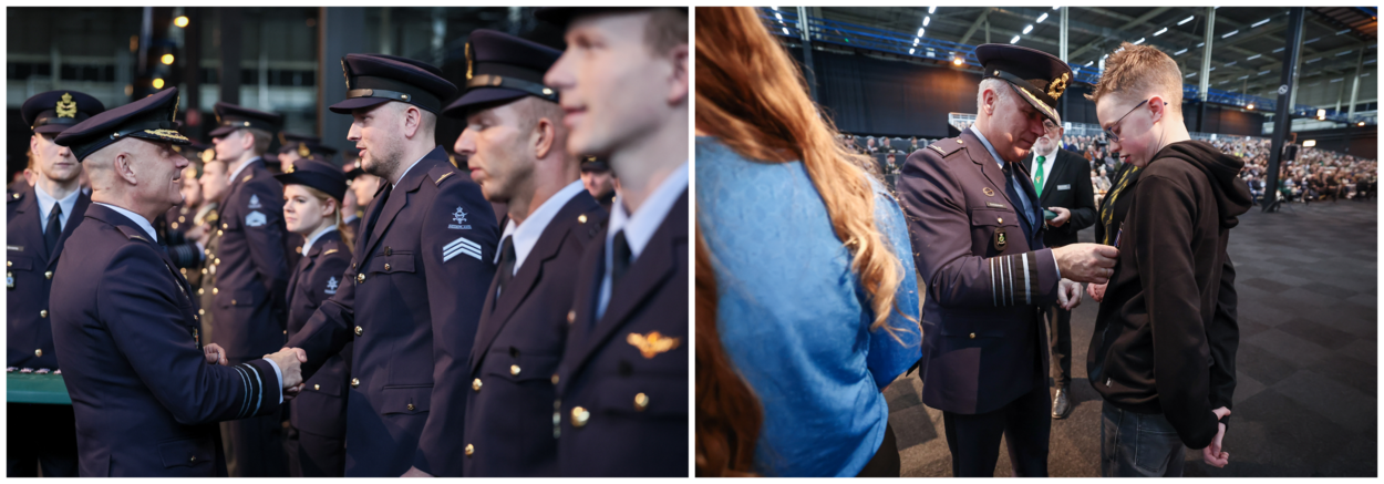 In de evenementenhal in Gorinchem kregen de militairen de onderscheiding voor hun deelname aan missies in Europa. Ook C-LSK luitenant-generaal André Steur reikte een aantal medailles uit. Luctmachtmilitiaren kregen de onderscheidingen voor deelname aan de enhanced Air Policing in Polen en voor missies in Irak en Roemenië.