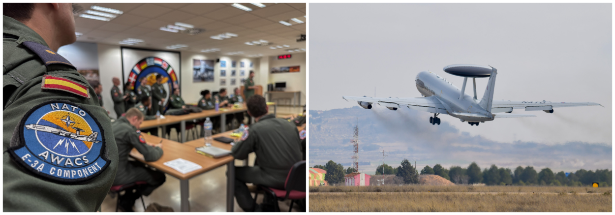 Dat is de Europese jachtvliegopleiding tot mission commander op de Spaanse vliegbasis Albacete. De AWACS leverde air battle management support voor de jachtvliegtuigen en het gebruikte de mogelijkheid om de eigen bemanning te laten trainen met jachtvliegers uit Franrijk, Griekenland, Spanje, Tsjechië en Zwitserland. In de NAVO-afvaardiging zaten twee Nederlandse militairen en evenzoveel burgermedewerkers. In de oefenstaf van de TLP zit ook een Nederlandse luchtmachtmilitair. Foto’s: NATO AWACS