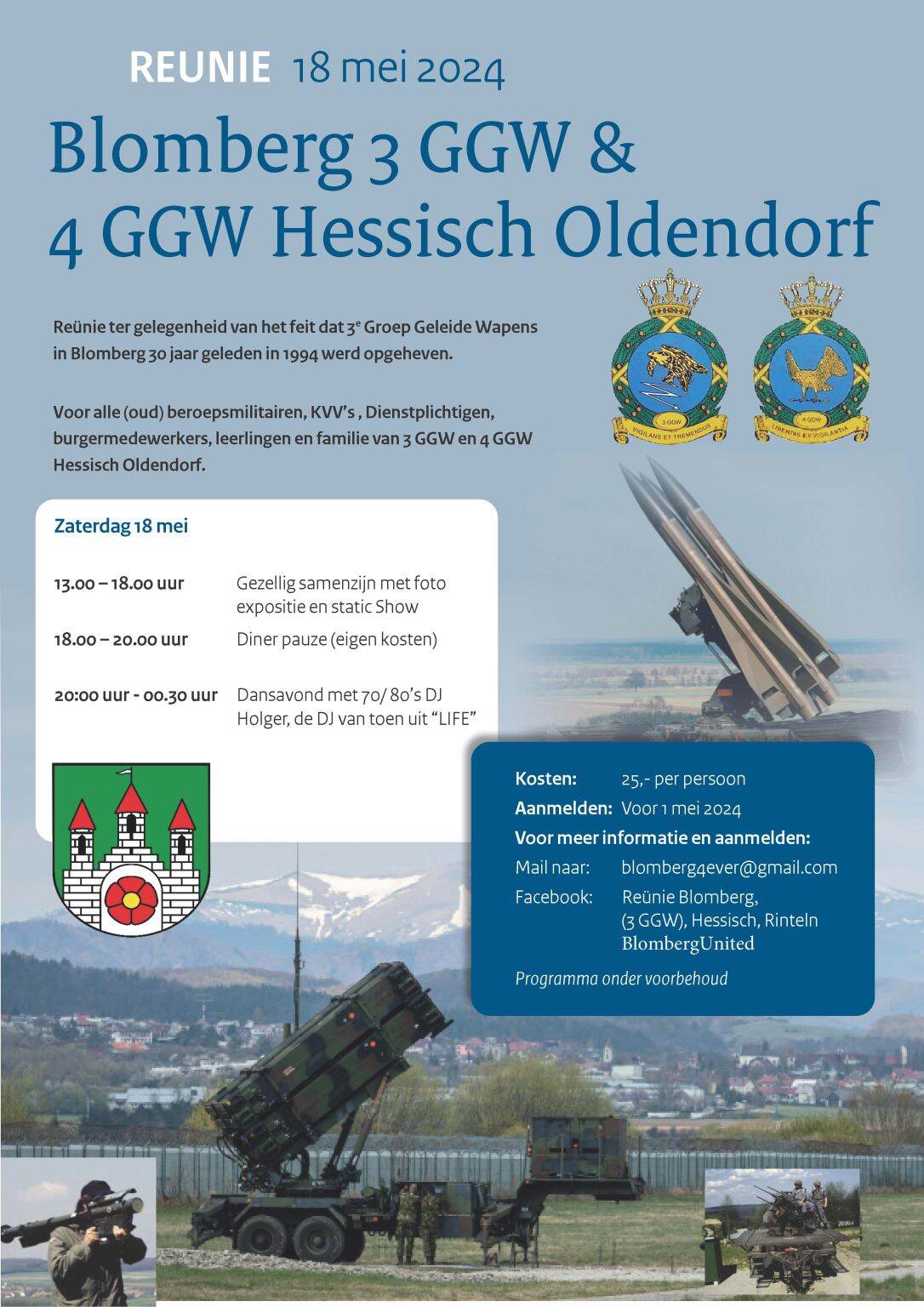 Bijzonderheden: Reünie bedoeld voor eenieder die gediend heeft bij de MFO in Sinaï, Egypte.