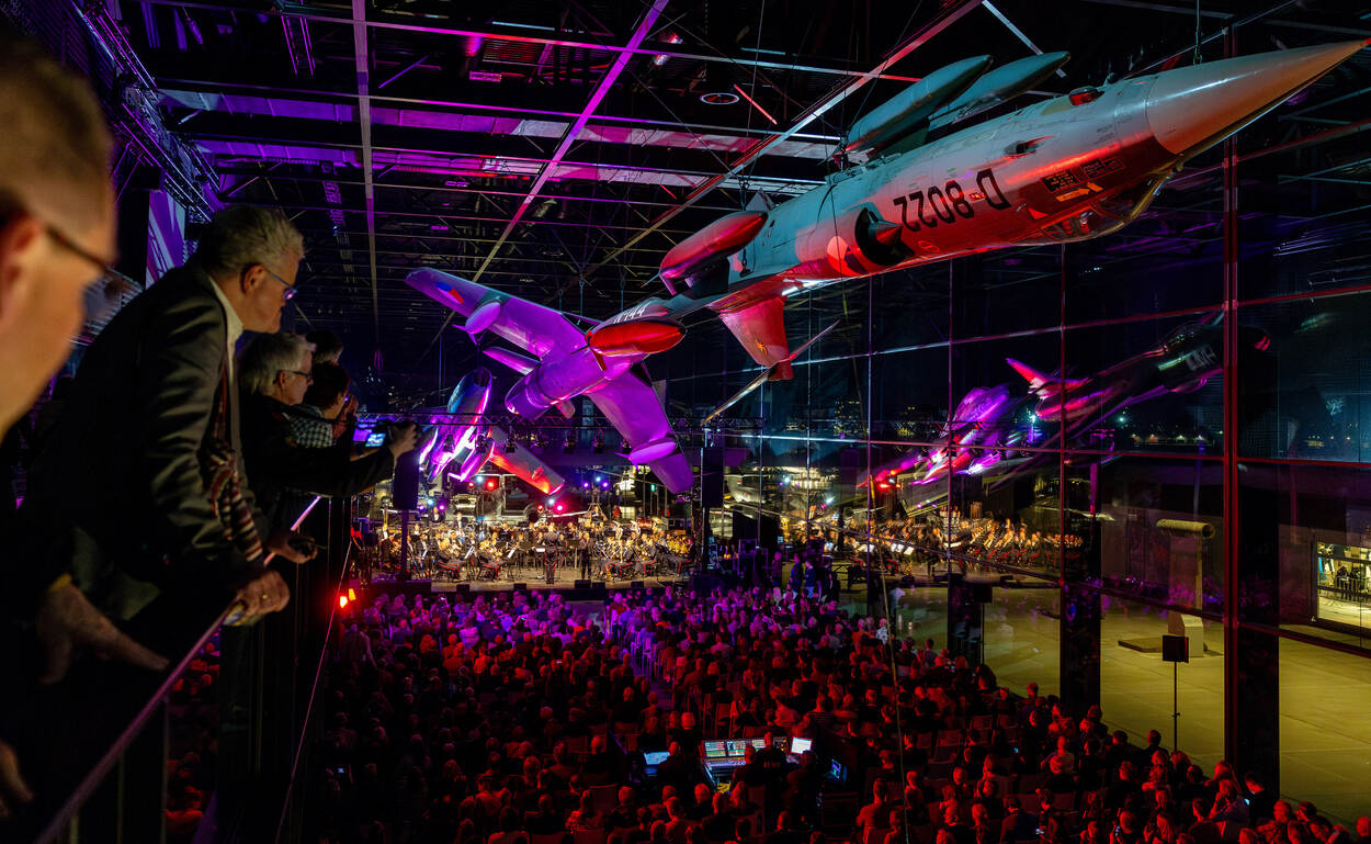 Een ode aan de F-16, een stukje cabaret met fluitiste Marianne van Koolwijk en een knallende afsluiter met hiphopformatie Postmen. Het Orkest Koninklijke Luchtmacht (Orkest KLu) toonde tijdens de Nacht van de Militaire Muziek opnieuw het veelzijdige kunnen. Omdat het evenement tien jaar bestaat, was het Nationaal Militair Museum in Soesterberg dit keer twee avonden omgetoverd tot festivalterrein. Een leuke uitdaging dus voor chef-dirigent majoor Patrick Curfs die het programma voor het Orkest KLu samenstelde. “Wij zorgen er altijd voor dat onze muziek toegankelijk is.”