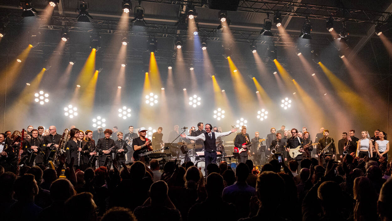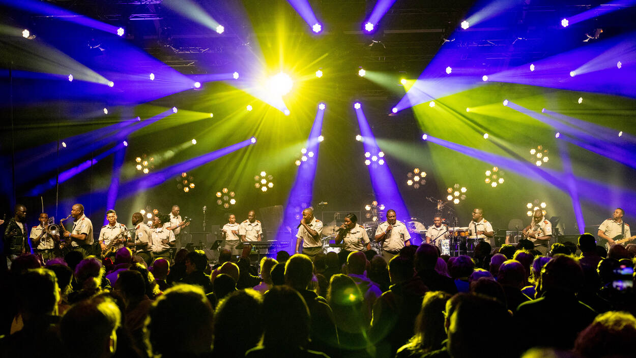 Optreden Postmen samen met het Orkest Koninklijke Luchtmacht.